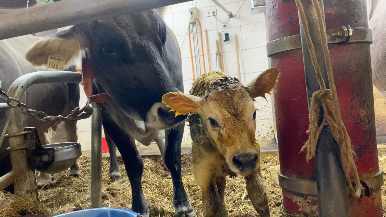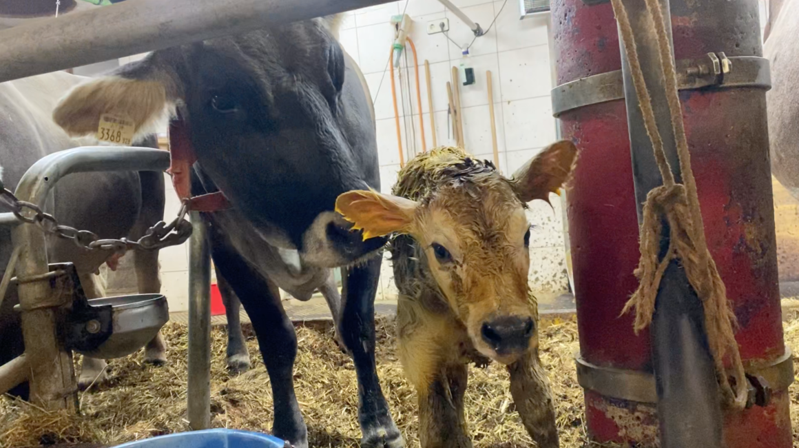Als wir gemeinsam in den Stall gehen, erwartet uns bereits eine Überraschung. Felicitas hat ein Kälbchen bekommen. Vermutlich ist es in der Nacht zur Welt gekommen, da es zwar noch etwas wackelig, aber munter durch den Stall spaziert. Nachdem erst vor kurzem ein Kälbchen Namens Shrek auf die Welt gekommen ist, war sofort klar, dass dieses kleine Mädchen nun Fiona heißen muss. Mama Felicitas säubert Fiona, bis sie schließlich mit der Flasche gefüttert wird. Für Hans und Robert ist eine Geburt zwar nichts Neues mehr, da sie bereits viele Kälber mit auf die Welt gebracht hatten, jedoch freuen sie sich bei jedem Kälbchen, wenn es gesund und munter ist. Für mich ein wirklich toller Moment!