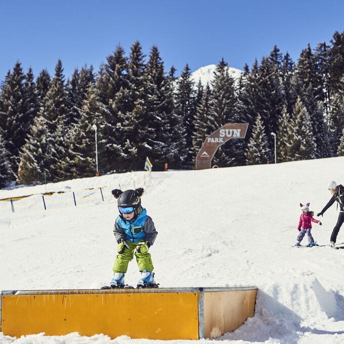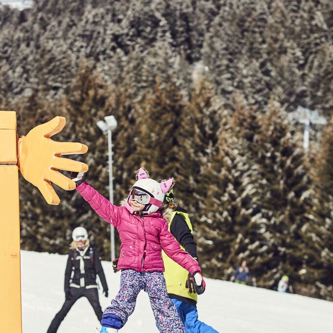 Die Fun Slope auf der Fisser Nordseite zählt zu seinen neuesten Abfahrten, bei denen es kreativ und interaktiv wird. Ob die Fun Slope auch für deine Kids die passende Abfahrt ist, erklärt dir der begnadete Shaper: „Jeder, der die breite, mittelschwere Plazörabfahrt (Pistennummer 21) runterkommt, kann hier fahren. Neue Obstacles machen den Ritt durch die Fun Slope besonders spannend für kleine als auch große Skihasen. Wer diese ERLEBNISABFAHRT nicht mitnimmt, verpasst definitiv was. Zusätzlich hilft eine farbliche Kennzeichnung, ob die Obstacles geeignet sind. Blau sind leichte Hindernisse, rote schon ein wenig tricky und bei den schwarzen sollte man sich dann schon sicher sein, was man macht. Ich empfehle jedem, zuerst nur zu schauen und bei der nächsten Abfahrt dann zu testen.“