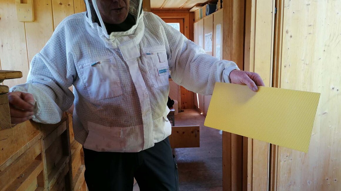 Damit der Imker an den Honig kommt, muss er vor dem Schleudern den Deckel auf den Waben entfernen. Das entfernte Wachs wird anschließend gesammelt und eingeschmolzen. Aus dem eingeschmolzenen Wachs wird dann ein vorgefertigtes Wabenmuster erstellt. Das dient den Bienen als Basisgerüst für ihre Waben. So können die Bienen mehr Energie für das Honigproduzieren aufwenden. Stibitzt der Imker ihren Honig, füttert er die Bienen mit Zuckerwasser, damit sie gut durch den Winter kommen. „Alles soll man den Bienen aber nie nehmen“, so die Einstellung von Alfred.