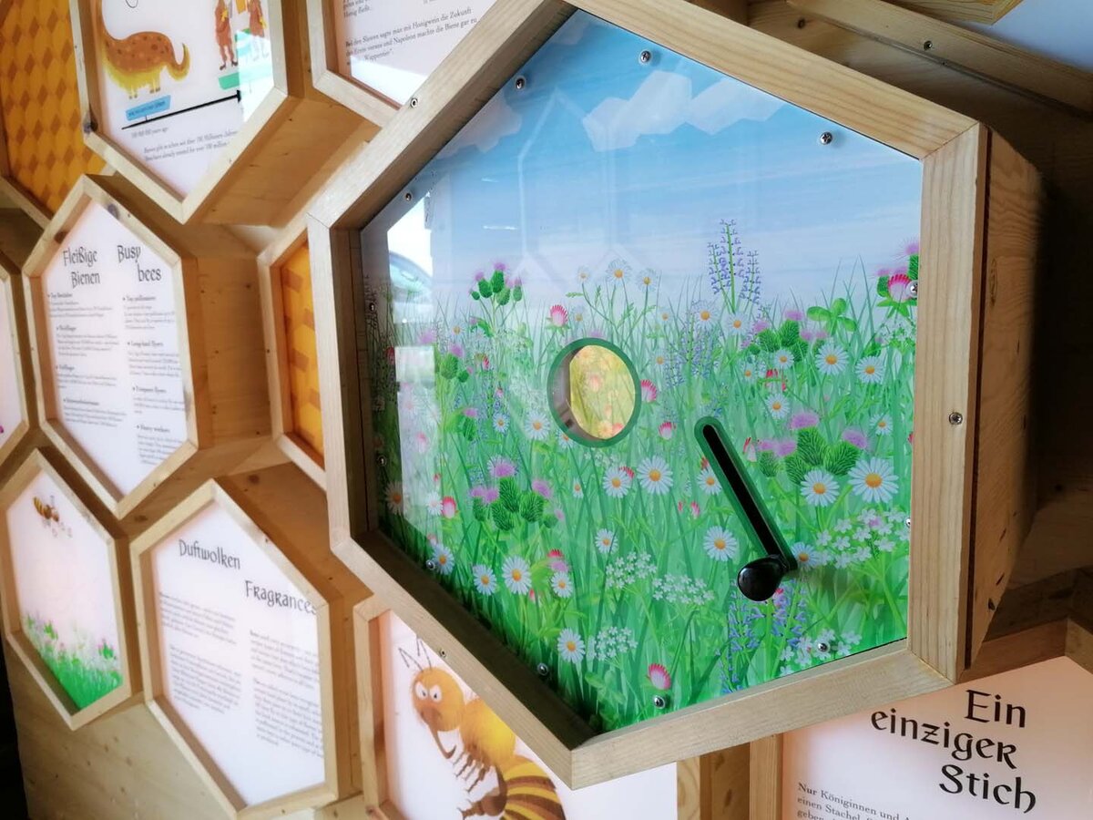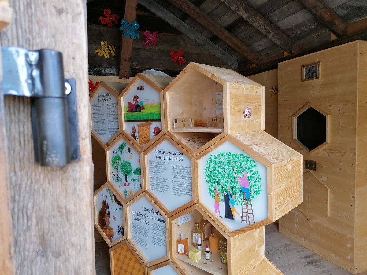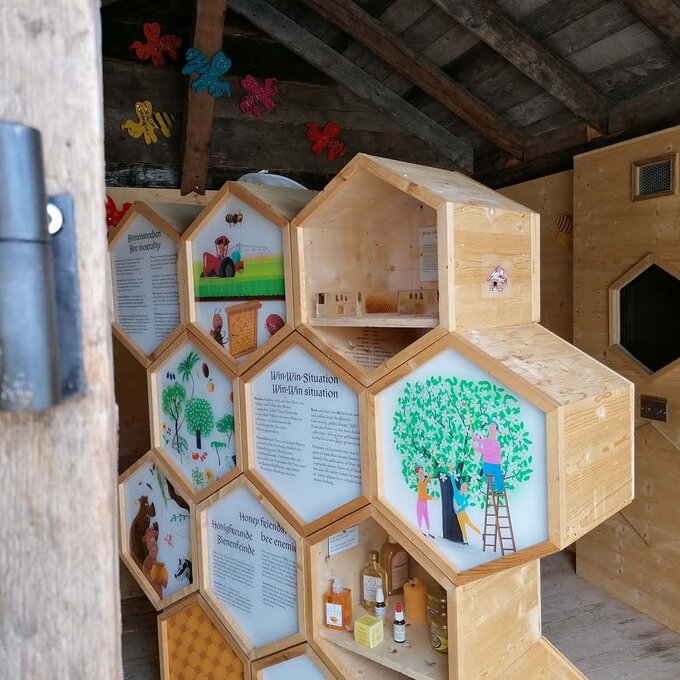 Bienenzucht ist ein komplexes Hobby. Alfred hat dieses Hobby teilweise zu seinem Beruf gemacht. Im Sommer kümmert er sich, neben seinen Stöcken in Fiss, nämlich zusätzlich um die Bienenvölker auf der data-cke-saved-href="/de/Sommerurlaub/Familien/Erlebnispark-Hoeg" rel="noopener">Hög in Serfaus. Stefan Mangott, Geschäftsführer der Seilbahn Komperdell, hatte die Idee zum Bau des spannenden Bienenhauses in Serfaus. Ein wunderbares Projekt, wie ich finde. Betriebsleiter und Imker Alfred war bei der Umsetzung von Anfang an dabei. Zusammen mit der Ausstellungskuratorin Mag. Lisa Noggler und Alfred inszenierte die Bergbahn das Bienenhaus liebevoll. Seit Sommer 2019 versorgt das Häuschen Groß und Klein mit spannenden Geschichten rund um die gelb-schwarzen Insekten. Das Bienenhaus ist Teil des aktuellen Nachhaltigkeitsprojektes in der Ferienregion Serfaus-Fiss-Ladis. In SFL denkt man einfach weiter. Hast du das liebevolle Video im Bienenhaus schon gesehen? Bei meinem Besuch auf der Hög erfahre ich zahlreiche interessante Fakten rund um das äußerst wichtige Insekt.