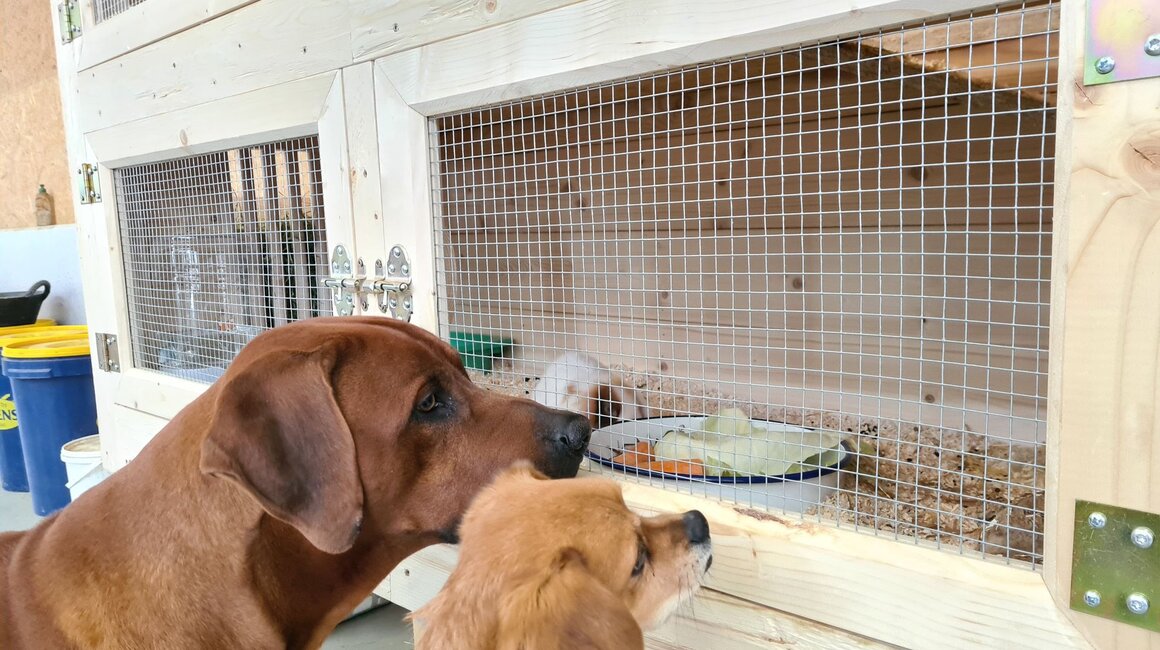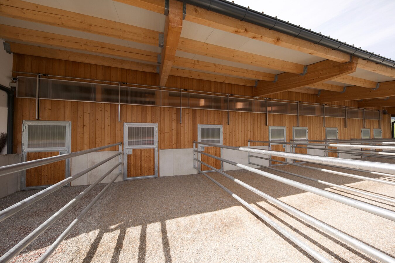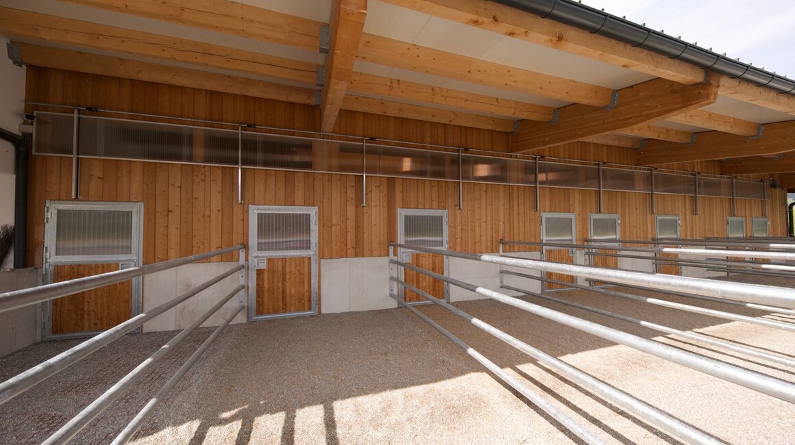 Auch die Höhe des Raumes beeindruckt mich. Julia erklärt mir, dass sie bewusst MEHR PLATZ für ihre Vierbeiner geschaffen haben, wie eigentlich vorgeschrieben ist: „Unsere Tiere können sich freier bewegen und die großzügige Raumhöhe sorgt für eine gute Luftzirkulation. Sie atmen eine gute und vor allem keimfreie Luft ein.“ Den tierischen Hofbewohnern scheint es sichtlich gut zu gehen. Im Stall herrscht ganzjährig die gleiche Temperatur. Lungenentzündungen durch Zugluft sind somit Schnee von gestern. Dass der Familie das Tierwohl sehr am Herzen liegt, wird mir mit jedem Schritt durch die Hofräume und über die Wiesen rundherum noch klarer. An meiner Seite ist dabei stets Hofhund Maijuk, der alles im Blick behält.