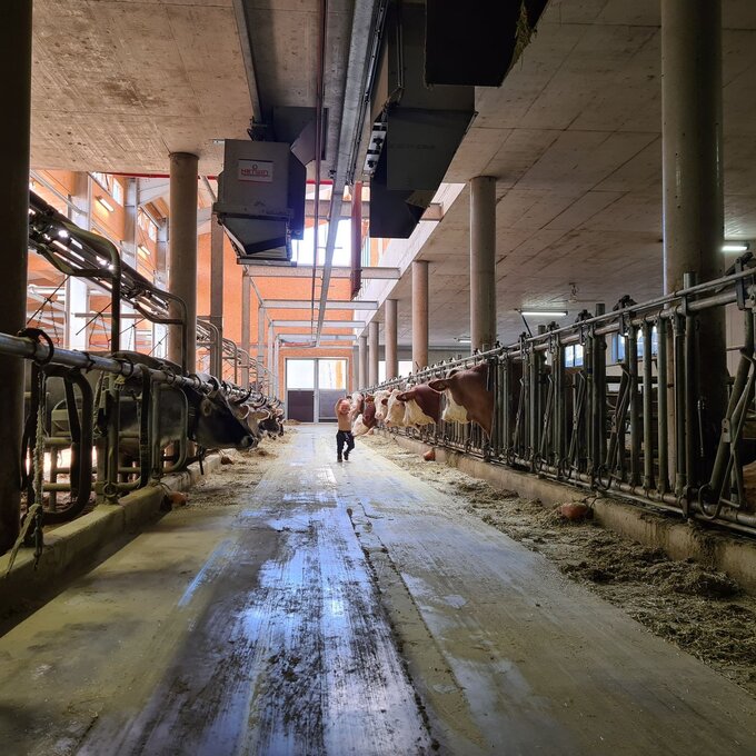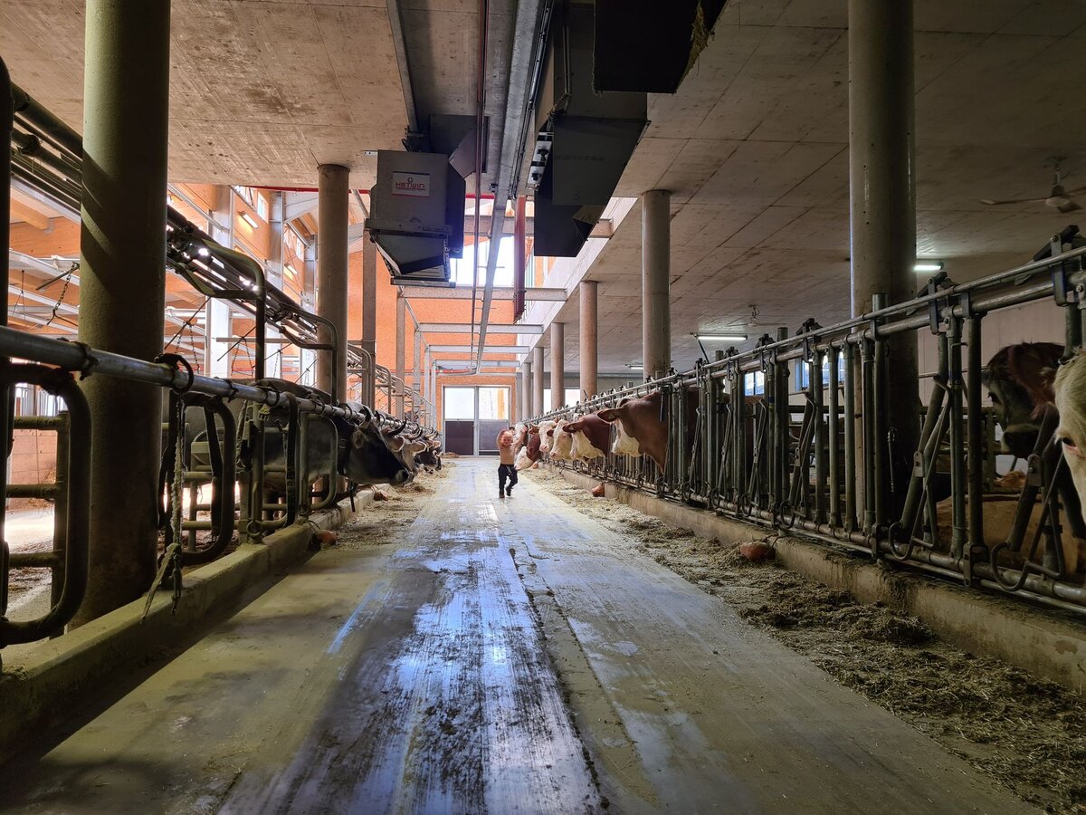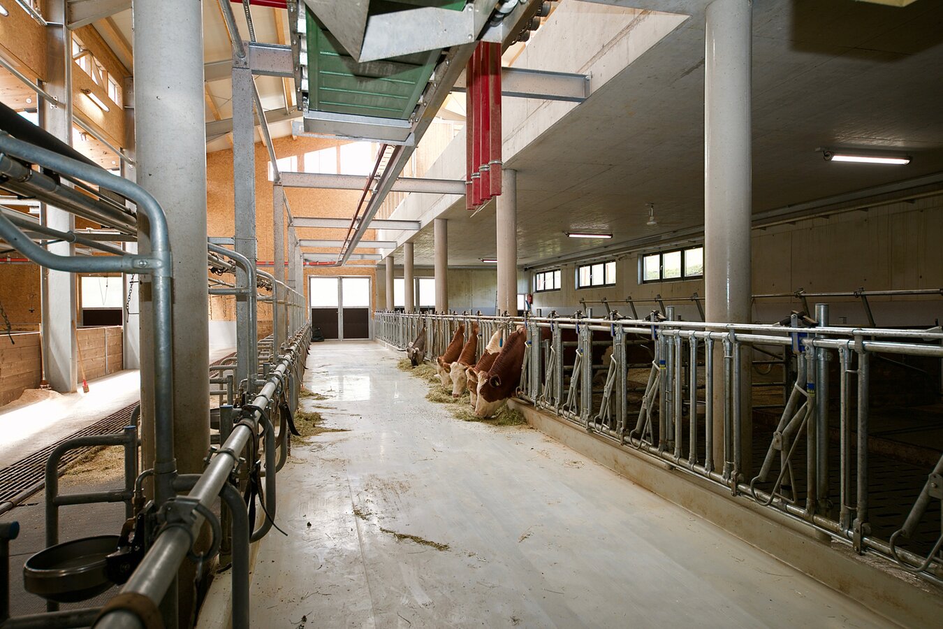 Beim Betreten des Kuhstalls fallen mir bereits diverse Gerätschaften auf: eine automatische Fütterungsanlage sowie ein Ausmistroboter. „Für uns war von Beginn an klar, wenn wir einen neuen Hof bauen, dann sollte er so MODERNISIERT sein, dass ihn im Ernstfall auch einer alleine bewirtschaften kann. So bleibt einfach MEHR ZEIT für andere wichtige Arbeiten auf dem Hof.“ Das Ausmisten und die Fütterung erfolgen maschinell, wohingegen beim Melken der Mensch eingreifen muss. Klassisch mit der Hand wird aber nicht gemolken, sondern mit einer Melkmaschine. Bei der Heuernte geht es natürlich auch nicht alleine, hier sind viele Hände gefragt.