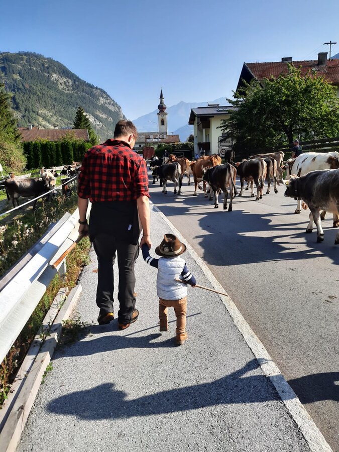 Gabriels Eltern sind für die Pferdezucht zuständig: Mama Ursula, die den Pferden ihren Namen gibt, erklärt mir: „In der Haflingerzucht ist der ANFANGSBUCHSTABE von einem Stutfohlen identisch mit dem der Mutterstute. Dasselbe gilt für ein Hengstfohlen. Dort wird der Anfangsbuchstabe von dem Hengstvater verwendet". Interessant, oder? Sie erinnert sich lächelnd, welche entscheidende Frage einst ihr Mann seinem Vater stellte: „Was wäre dir lieber, wenn ich mir einen Haflinger kaufe oder eine Cross-Maschine? Ich bin mit Pferden aufgewachsen und so hat sich mein Mann, mit Zustimmung seines Vaters, 2 FOHLEN gekauft und alles hat seinen erfreulichen Lauf genommen.“ Alle auf dem Hof wirken so glücklich und angekommen. Bemerkenswert. Auch ich bin begeistert von der Lebensweise in Ladis. Es war damals also wirklich eine gute Idee, sich für 2 PERDESTÄRKEN und gegen 60 PS zu entscheiden.