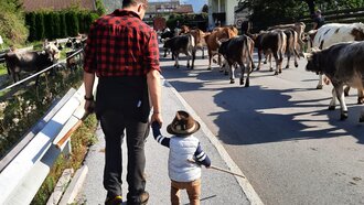 Die Vorteile der STALL-MODERNISIERUNG liegen natürlich auf der Hand. Dem Uropa Adolf (82) von Söhnchen Edi (2) ist es aber an ein paar Stellen nicht immer sauber genug. „Adolf geht jeden Morgen in den Stall und putzt die Ecken, macht also die Feinarbeiten, wo die Maschine nicht hinkommt. Er betreut gerne den Stall und ist sozusagen der "SPALTENPUTZER". Durch den täglichen Kontakt sind die Tiere äußerst zahm. Er liebt die Tiere und sie ihn. Am liebsten würden sie ihm in den Hosensack schliafa“, grinst Gabriel. Familie Netzer scheint hier ein eingespieltes Team zu sein.