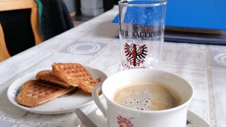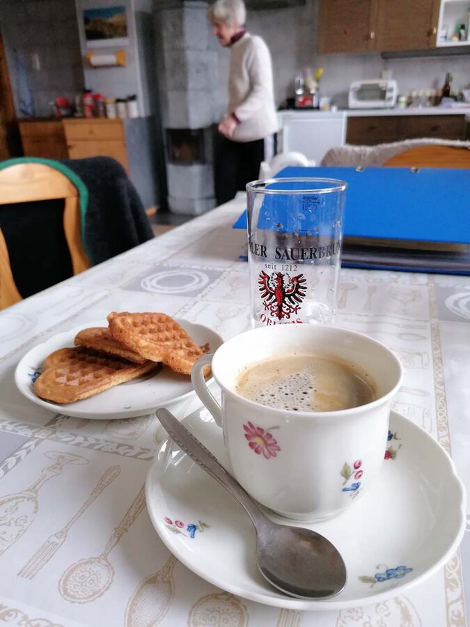 Burgls Küche duftet nach frisch gebrühtem Bio-Kaffee und selbstgebackenen Dinkelwaffeln. Bei ihr fühlt man sich in Kürze wie bei der eigenen Oma daheim. Die Dame hat das Herz einfach am rechten Fleck. Ich werde bestens umsorgt. Während ich mir noch einen Schluck Sauerbrunn gönne, kramt Burgl einige alte Fremdenbücher aus, in denen alle Gäste, die im Kurhotel die Sommerfrische, und später ihren Winterurlaub, verbrachten, aufgelistet wurden.