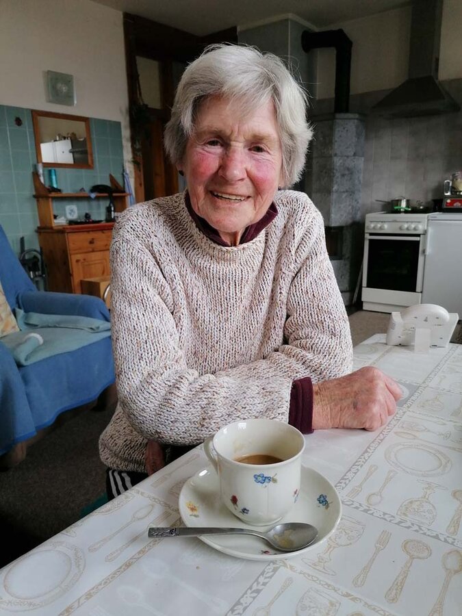 Burgl erinnert sich außerdem an die Petascher Hütte oberhalb von Obladis, die es heute leider nicht mehr gibt. Die Angestellten haben den Gästen Kaffee und Kuchen auf die Hütte gebracht. Schon damals schrieb man dem geselligen Plausch bei einer Tasse Kaffee und einem Stück Kuchen große Wichtigkeit zu. Mitten in der Natur von Obladis war das natürlich einzigartig.