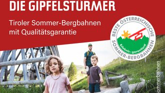 Qualitätsgarantie. Ob Abenteurer, Familienmensch, Sportler oder einfach Panoramaliebhaber – 27 Tiroler Sommer-Bergbahnen sorgen für Ihr schönstes Bergerlebnis. Nach strengen Kriterien geprüft und mit dem Gütesiegel „Beste Österreichische Sommer-Bergbahn“ vom Fachverband der Seilbahnen der Wirtschaftskammer Österreich ausgezeichnet, schaffen die Themenberge mit unterschiedlichen Erlebnisspezialisierungen Bergerlebnisse mit Qualitätsgarantie.