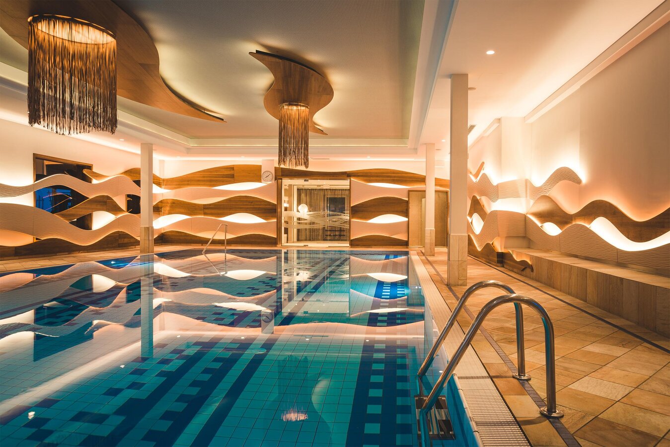• Ganzjährig beheizter Innenpool (ca. 31 °C) und dazugehöriger Ruheraum mit warmen Wasserbetten