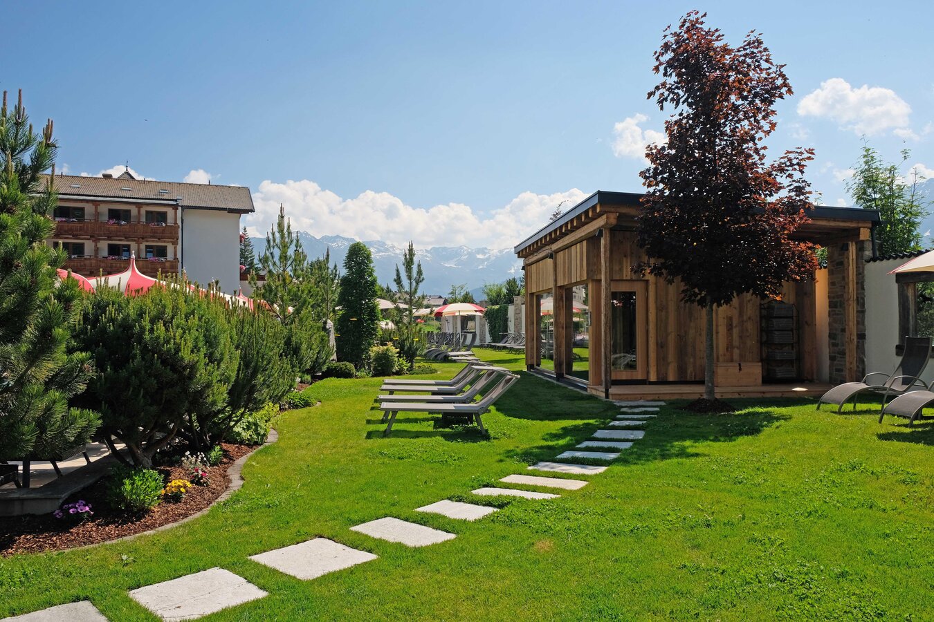• Gartensauna (Textilsauna mit Blick auf das Fisser Wander- und Skigebiet, ab 11.00 Uhr)