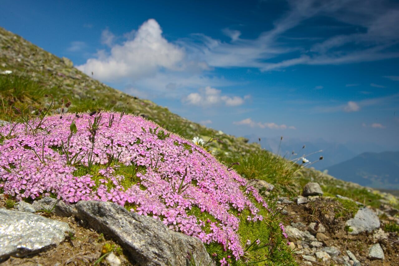 Der direkte Anstieg von Fiss über die Möseralm zum oberen Sattelkopf, dem Fisser Gipfelkreuz. Bis zur Möseralm ist der Weg eine asphaltierte, schmale Fahrstraße, im Anschluss ein Bergpfad, der sich in vielen Kehren immer steiler werdend mit schöner Aussicht bis zum Gipfel hochwindet.