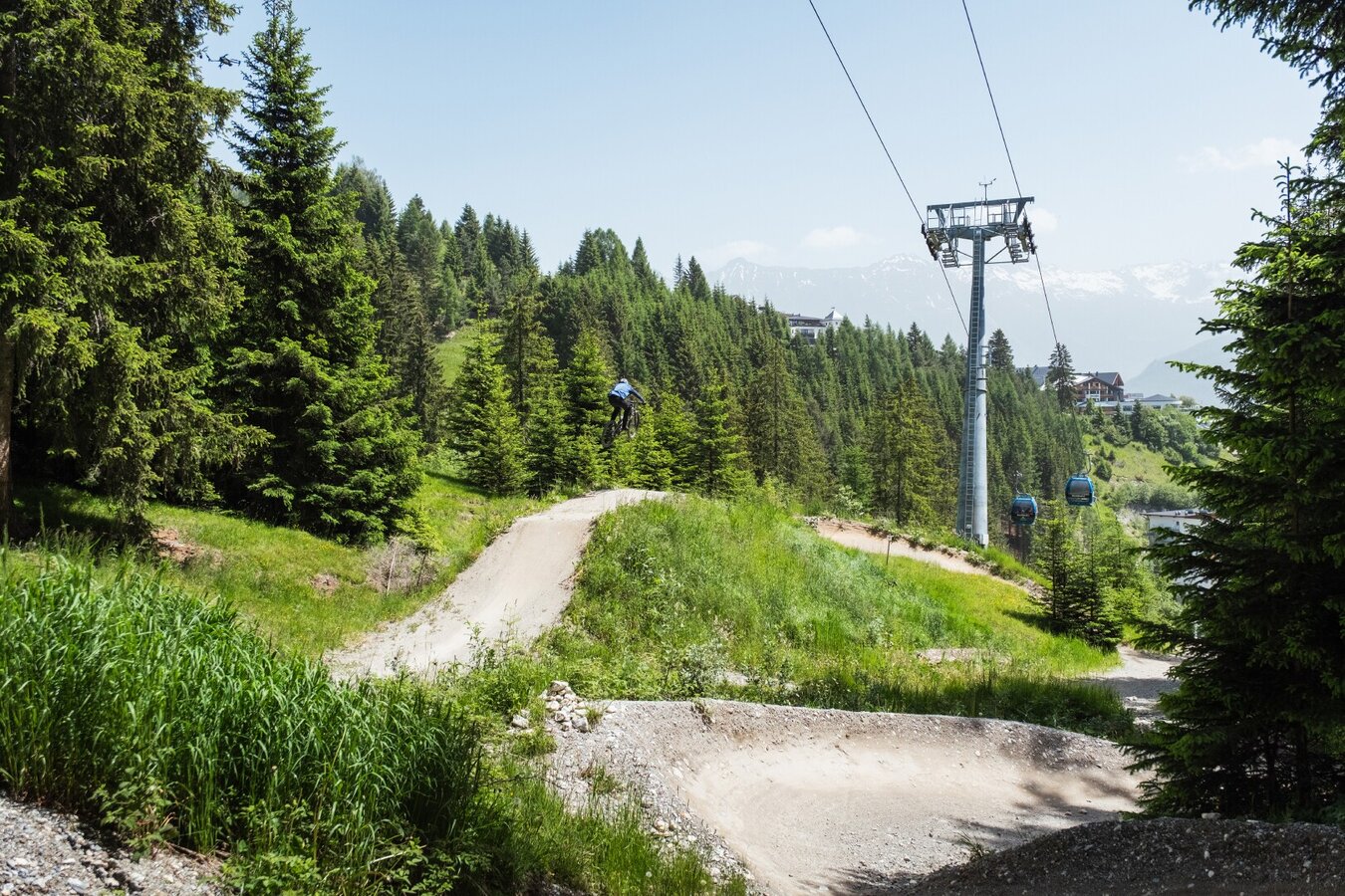 Den Freeride Trail lieben nicht nur die Leser und Leserinnen des Freeride Magazins, welche die Gestaltung des Trails inspiriert und mitverantwortet haben. Insbesondere für fortgeschrittene und erfahrene Bikepark-Besucher ist der Freeride Trail ein Paradies. Zum Trailhead gelangt man via Strada del Sole. Im unteren Drittel befindet sich dann die Abzweigung auf den Freeride Trail, wo Doubles und massive Sprünge für ordentlich Airtime sorgen. Viel Fokus und Konzentration sind auf der mittelschweren (roten) Bikepark Line ein Muss. Nach 370 Metern mündet der Freeride Trail wieder in die Strada del Sole, wo die letzten Trailmeter zurück zur Talstation der Waldbahn bewältigt werden. Kurz im Tal stärken und dann gleich noch ein Run, oder?