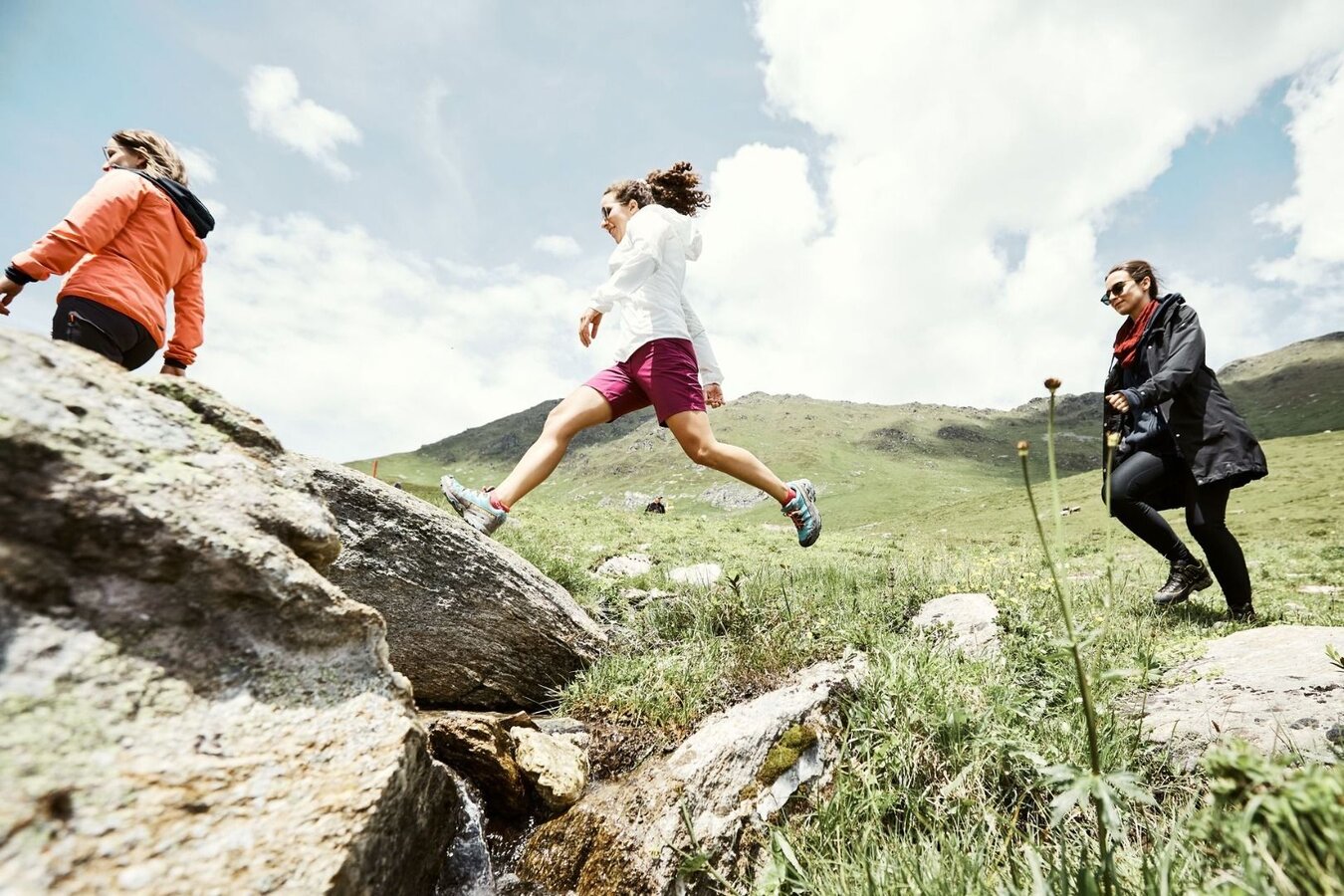 Richtung Obladis, jedoch gleich nach dem ersten Haus rechts den Hohlweg hinunter zum Tennisplatz Bei der bald folgenden Weggabelung entweder nach rechts über den flacher werdenden Steig zur Felsenburg und auf dem Asphaltweg links hinunter zur Innbrücke oder geradeaus weiter zum Fahrsträßchen zu den Asterhöfen.