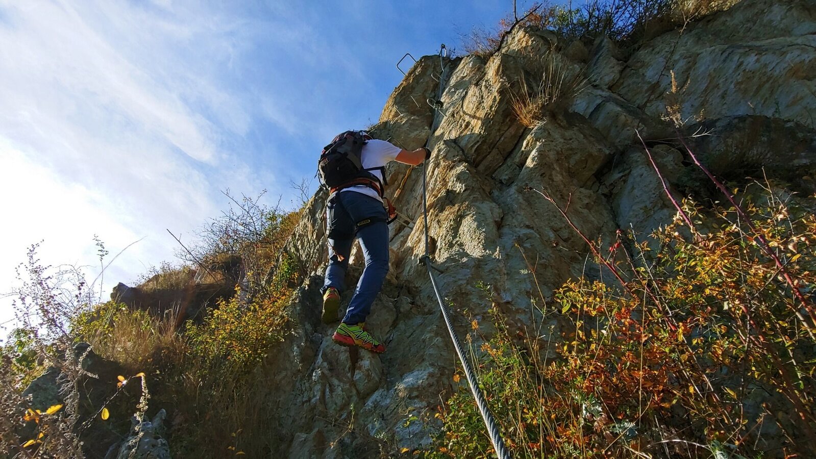 Der Pons Laudes Steig ist ein mittelschwerer Klettersteig mit etwas höherem Anspruch. Besonders die beiden steilen Passagen im Schwierigkeitsgrad C erfordern ordentlich Muskelkraft, da die Tritthilfen nur sparsam eingesetzt wurden.