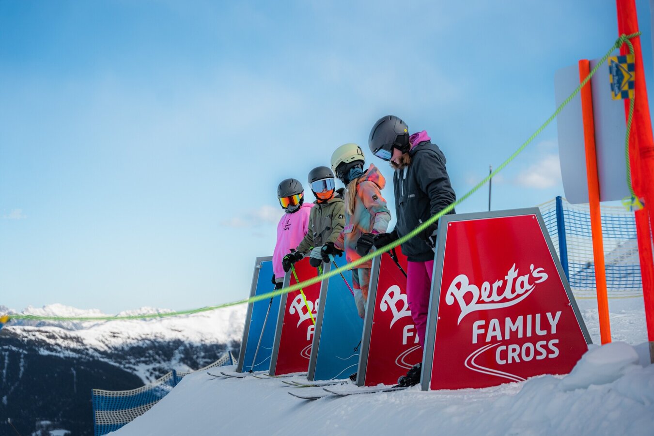 Auf Bertas Familycross taucht ihr gemeinsam in die Welt des Skicross ein! Sanfte Wellenbahnen, Steilkurven und kleine Sprünge bieten genau das richtige Maß an Action – perfekt für Anfänger und Fortgeschrittene. Hier geht’s vor allem um eins: Spaß am Fahren! Die abwechslungsreiche Strecke ist ein Abenteuer für die ganze Familie, und ihr könnt zu viert gleichzeitig am Startgate losdüsen.