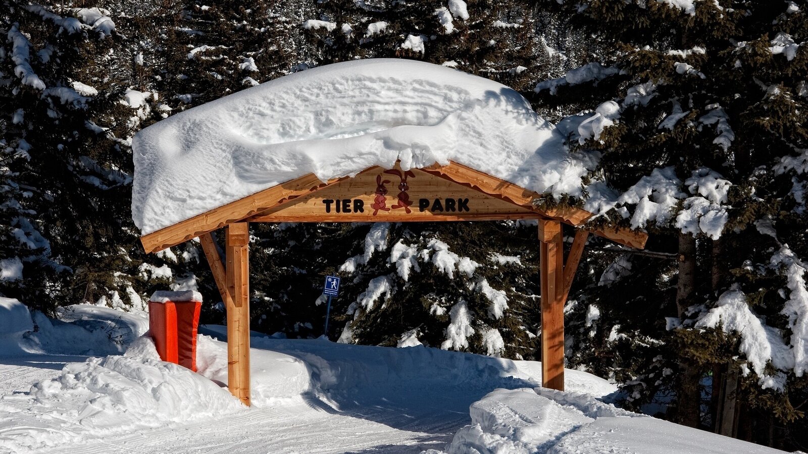 Eine weitere Attraktion ist die Themenabfahrt „Tierpark“ im unteren Bereich der Mittelabfahrt in Serfaus. Hier treffen die Kinder auf Hirsche, Rehe und Steinadler.