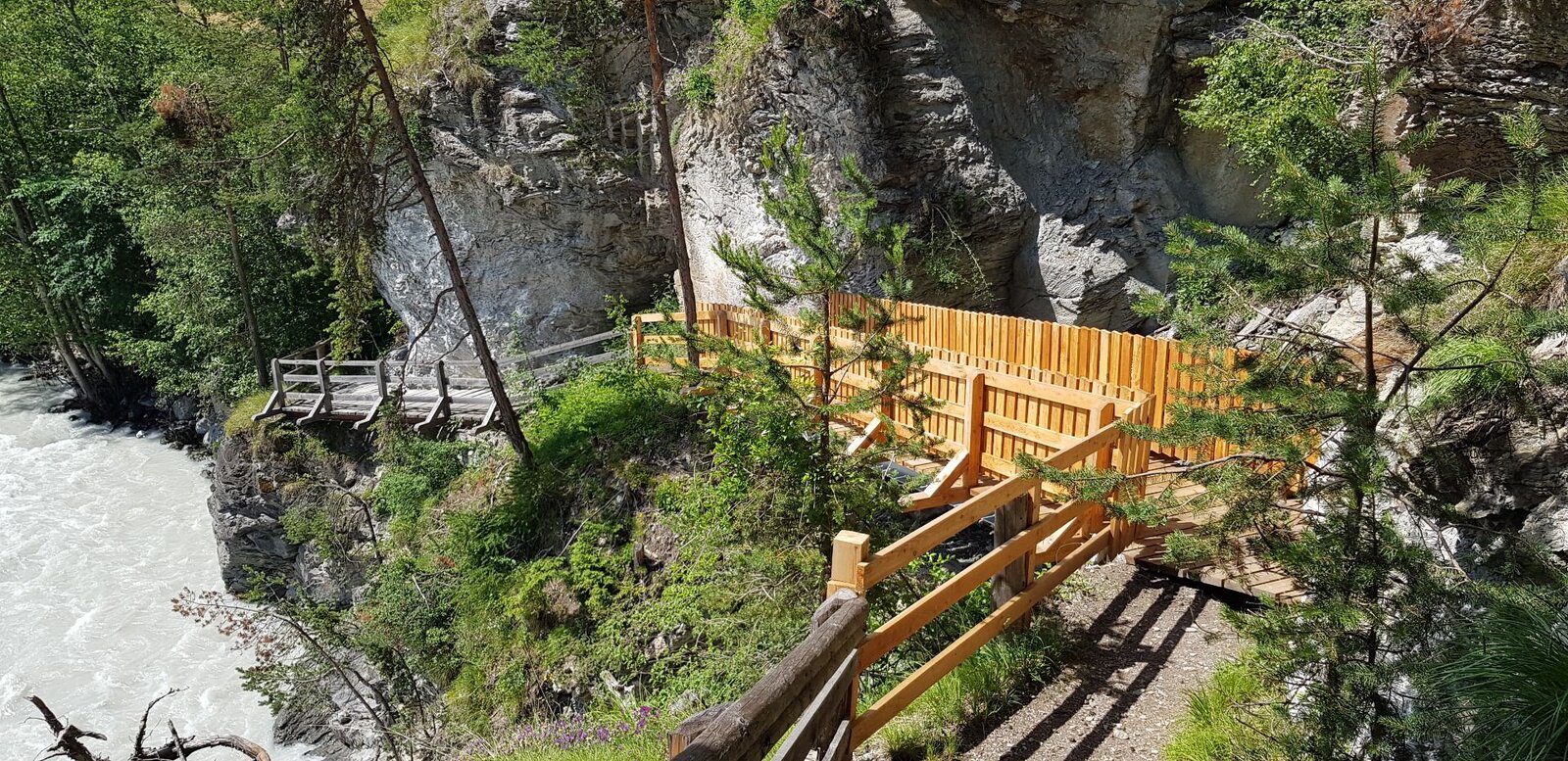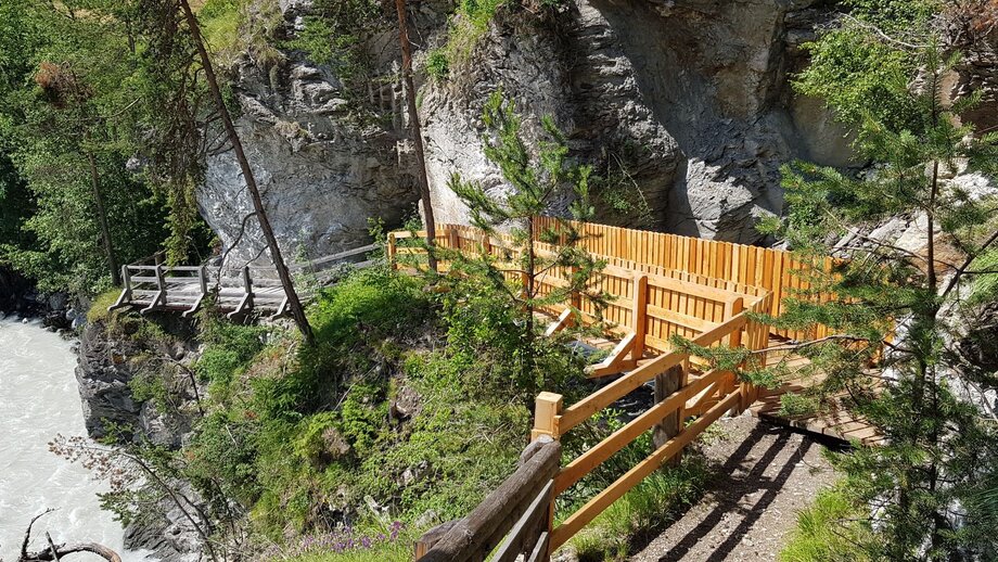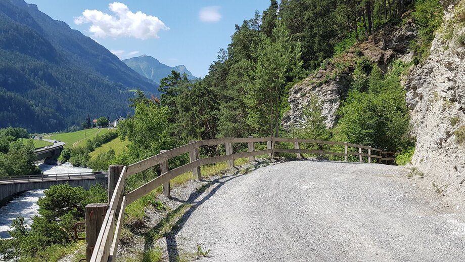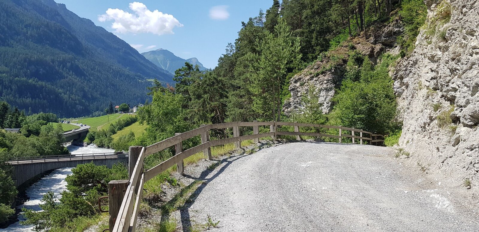 Starting at the bike park Serfaus-Fiss-Ladis, the trail follows the Waldweg trail to Serfaus, past the Parkcafe (S010) heading towards Serfauser Feld. The trail to Frauns starts next to the lowest houses. Turn right at the end of the trail and follow the Inn river to Tösens and on to Tschuppbach. This section of the trail has one passage where you have to carry or push your bike. To avoid this, turn left towards Ried at the end of the trail and follow the bike trail 1 as far as Tschuppbach. From Tschuppbach, follow the gravel path, steep to start with, to Stadelwies and then the asphalt bike trail on to Serfaus and back to the Serfaus-Fiss-Ladis Bikepark.