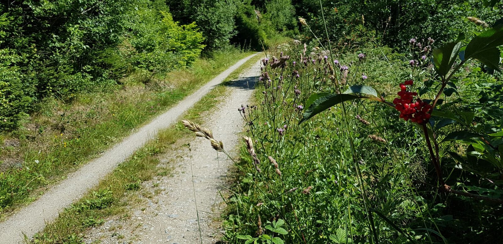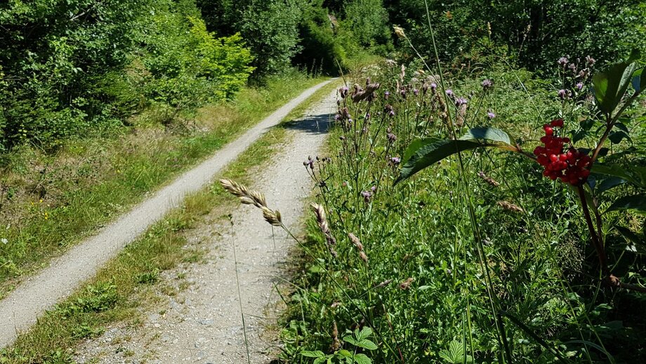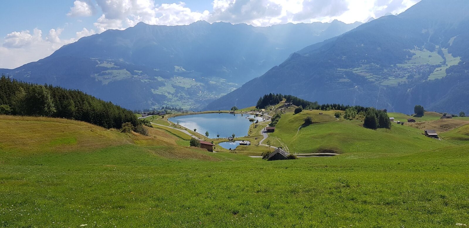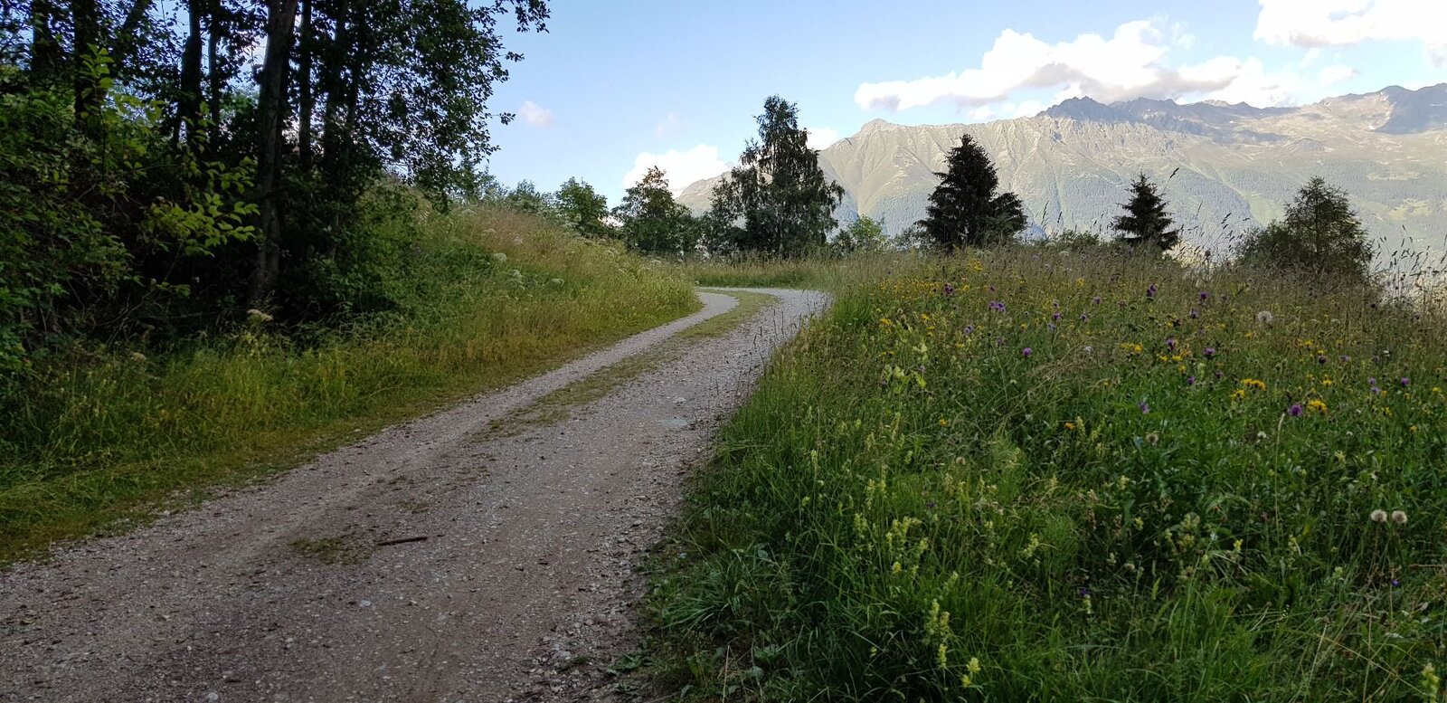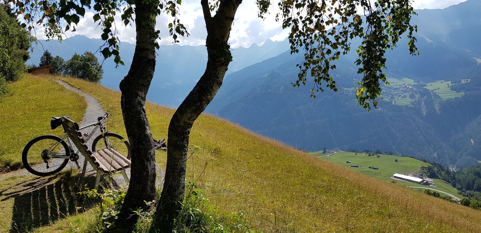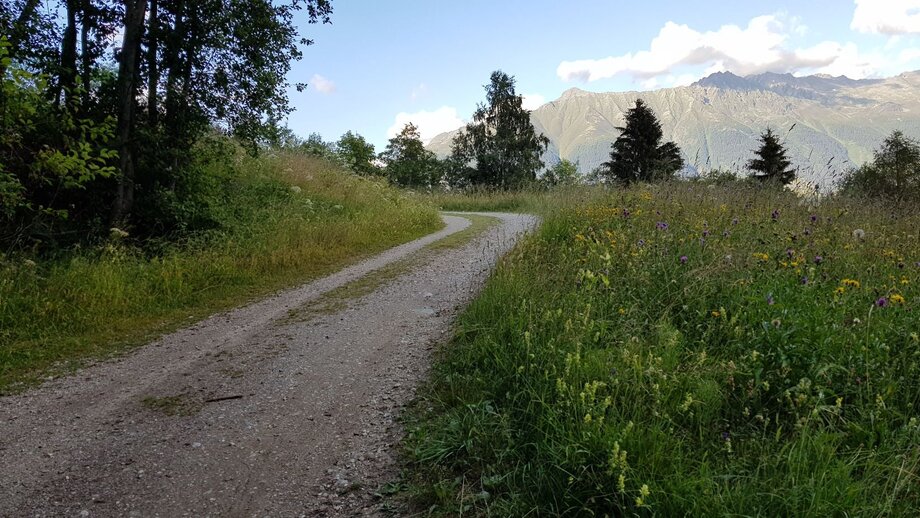 From the start at the bike park, follow the tarmac cycle path to the centre of Fiss and towards the Kulturhaus, keep left just before the Kulturhaus (F009) and at the end of the short climb (F008) turn right towards Obladis. At the Falterjöchl (F006), which offers a wonderful panoramic view, a short downhill to the crossroads (L017), continue straight on here, briefly steeply downhill, past the villa and on the tarmac road to Obladis, at the bend (L060) continue straight on the tarmac road to the fork (L023), Follow the gravel path to the left to the junction with the Rabuschl family tour (L020) at Schönegg, turn right and follow the path to the junction with the Urgtalweg (F027), continue flat to Rabuschl (F025) and continue slightly downhill to Fiss, through the village back to the bike park.