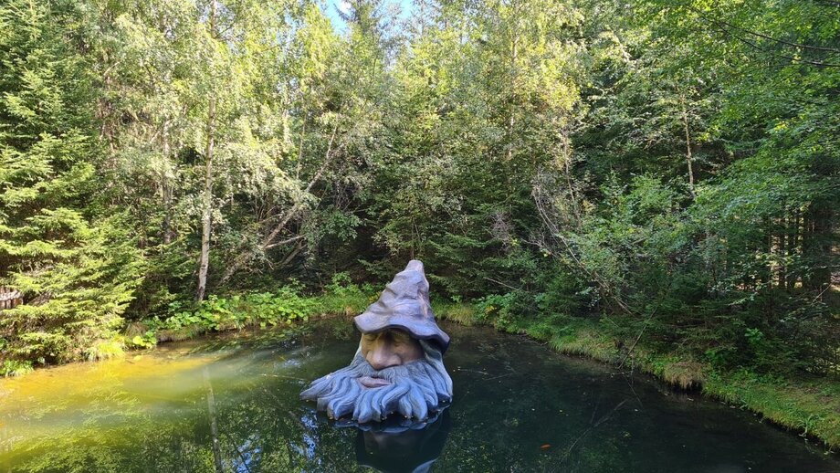 At the last serpentine before Café Obladis (L063) a short trail leads to a small campsite in the forest (L021). This is where the Herrenweg trail begins and leads along the same level towards the north, turn halfway right down on the road (L024) to Neuegg and past the Wodebad pond (L025) to the Wodeturm tower (L030).