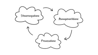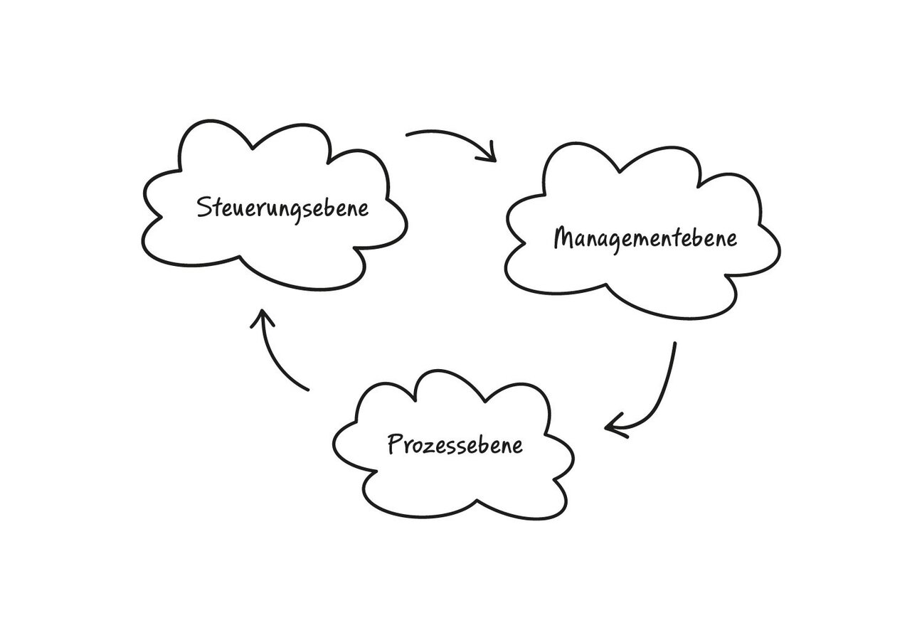 Um von der Strategie in die Umsetzung zu kommen, braucht es Menschen, die sich für die Sache einsetzen. Die unterschiedlichen Verantwortlichkeiten wurden in drei Ebenen eingeteilt. Diese sind nicht hierarchisch gegliedert, sondern in gleichberechtigter Abstimmung untereinander.