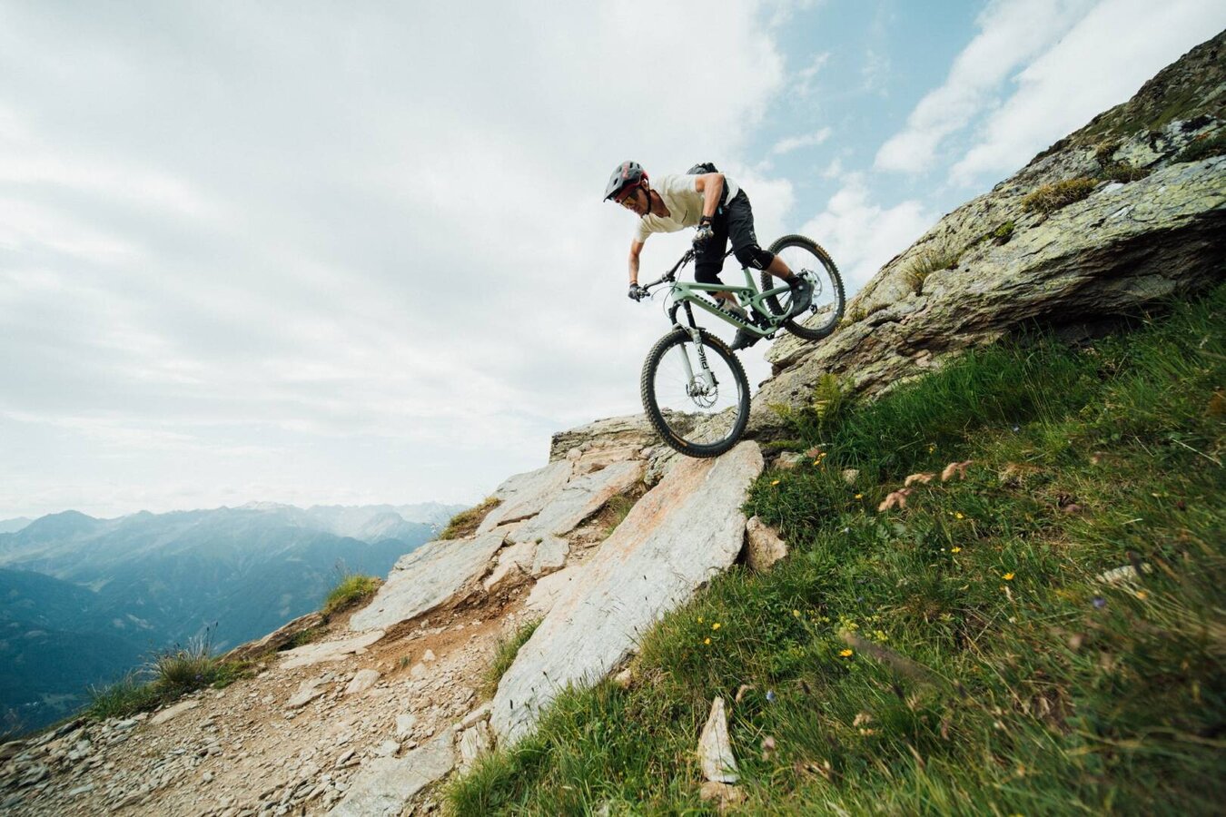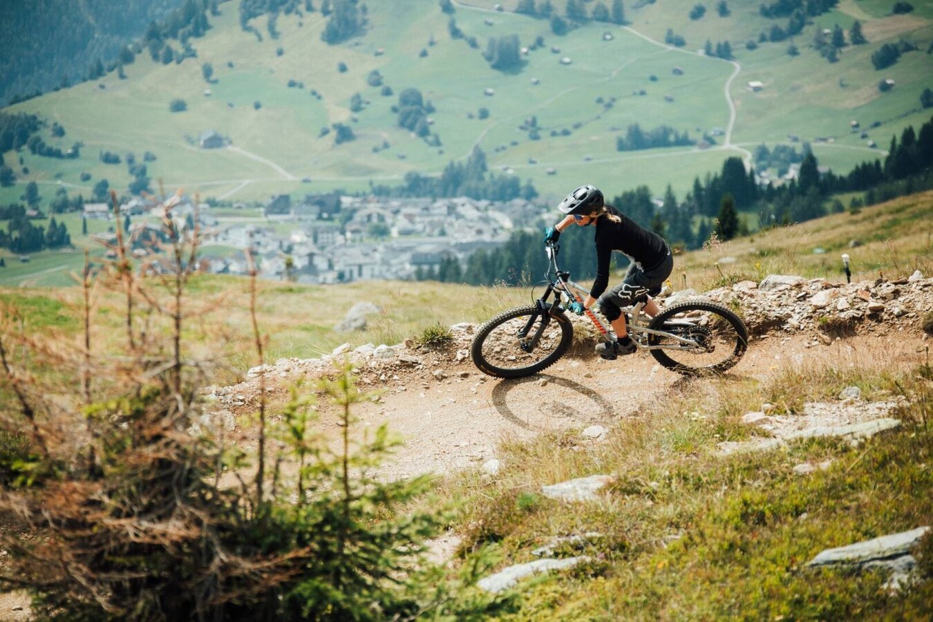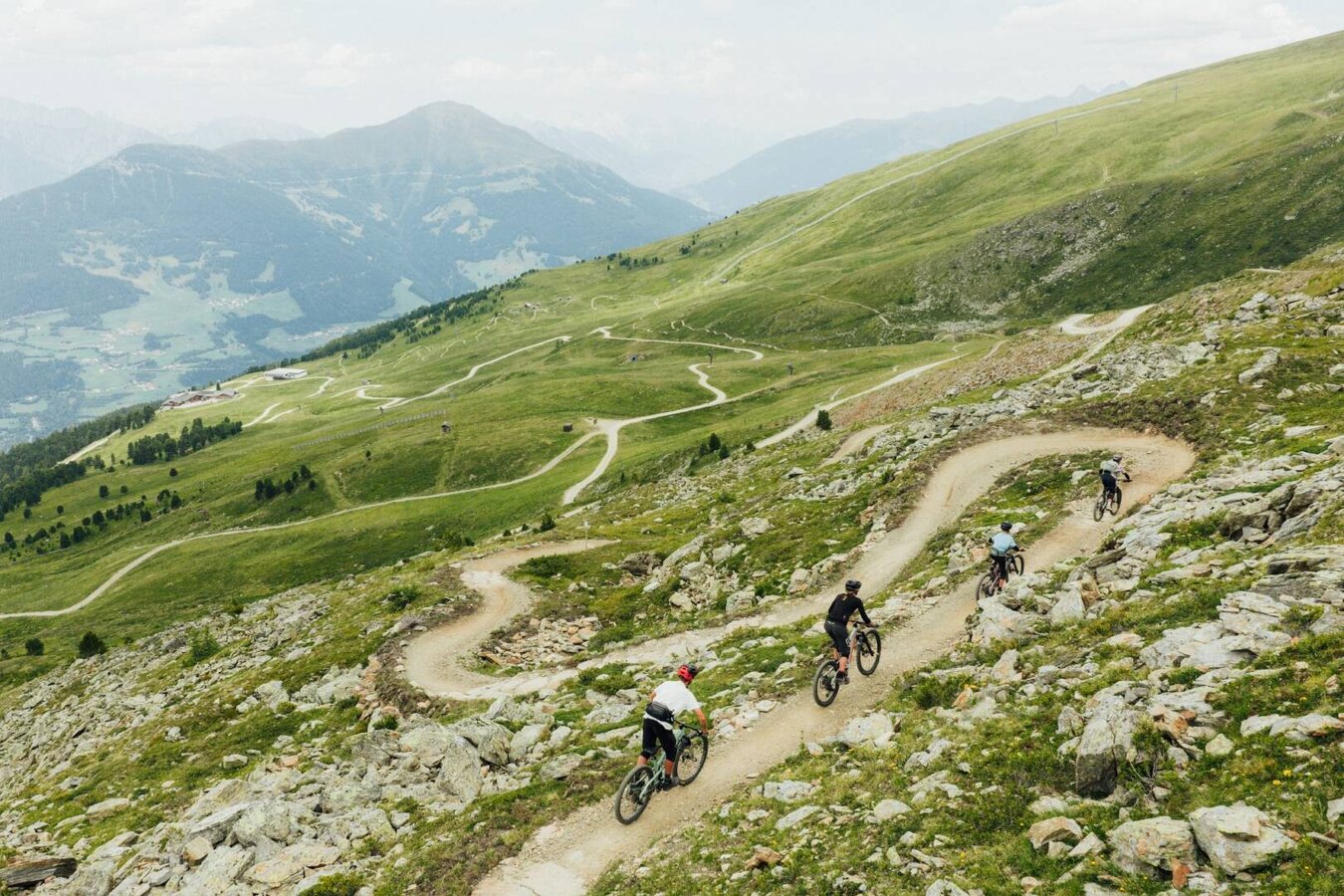 De trail begint op 2.600 meter en slingert met veel flow door adembenemend, hoogalpine terrein richting Fisser Joch. Het pad voert door zachte haarspeldbochten, flowy bochten en kleine en grote golven naar het Heustadldorf – de perfecte plek voor een korte pauze: geniet van de zon, bewonder het panorama, en verder gaat de rit.